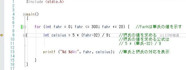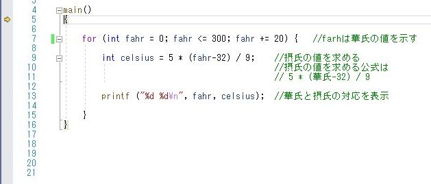 int fahr; // 華氏の値を格納する変数