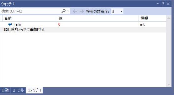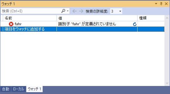 「項目をウォッチに追加する」をマウスでクリックすると入力出来るようになりますのでそこにfahrと入力して下さい。