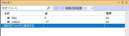 ステップインを実行する前にfarhとcelsiusの値を確認しましょう。