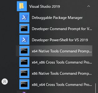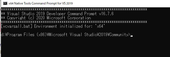 64bit OSの場合は、"x64 Native Tools Command Prompt for targeting x64″になります。