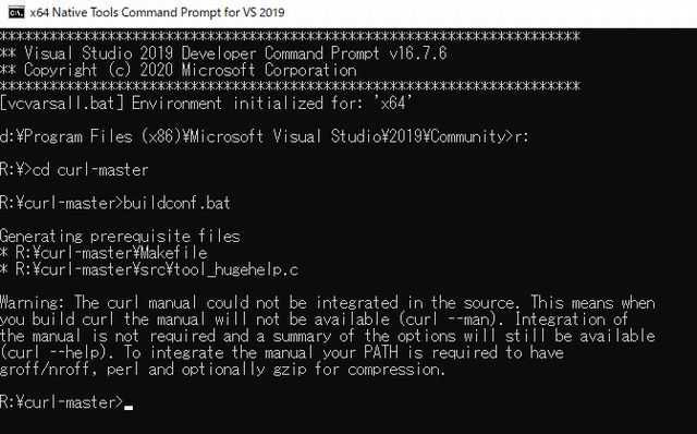 nmake を利用したcurlのコンパイル