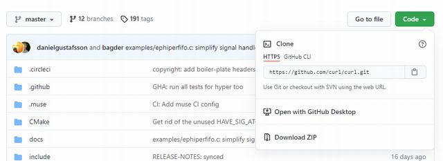 最初にcurlの最新バージョンのソースをダウンロードします。