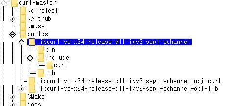 3個のフォルダが生成されるが必要なのはlibcurl-vc-x64-release-dll-ipv6-sspi-schnnel。